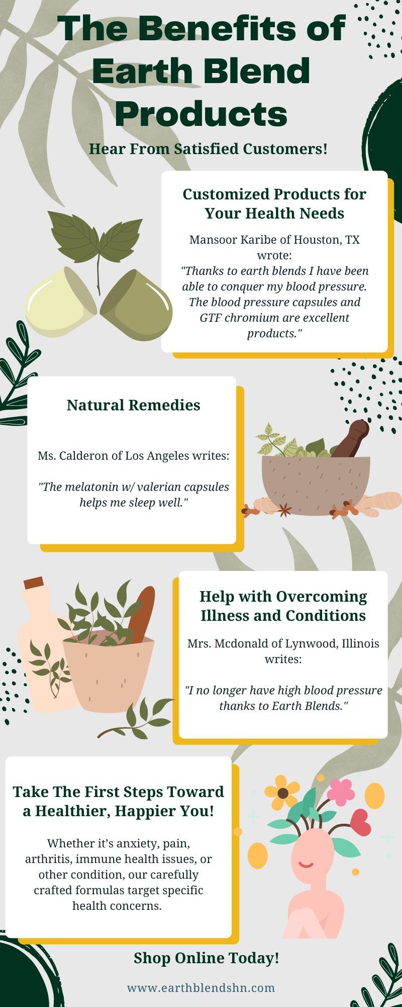 With the rise of natural and holistic approaches to wellness, Earth Blend Herbs and Nutrition emerges as a reliable ally. Offering a wide range of customized products tailored to individual health needs, Earth Blend Products is dedicated to providing natural solutions and has positively impacted the lives of real people.